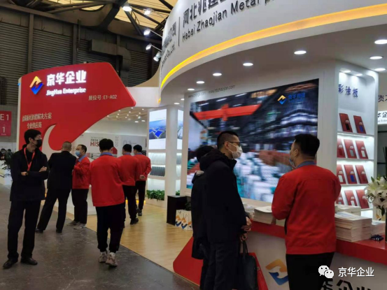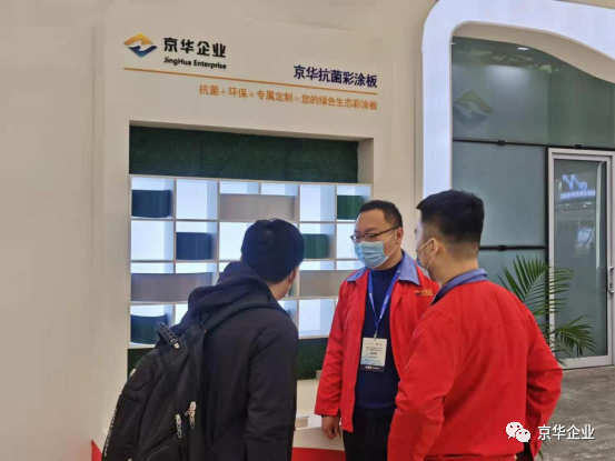 展覽會(huì)上(shàng)各界人(rén)士紛至沓來(lái),京華兆建作(zuò)為(wèi)金屬闆材塗鍍解決方案專業供應商,在展位上(shàng)部署了專業的工作(zuò)人(rén)員,為(wèi)來(lái)往人(rén)員進行(xíng)耐心詳盡地講解,并展示高(gāo)端彩塗闆系列産品樣闆。京華兆建的生(shēng)産産品涵蓋精品冷軋闆、熱鍍鋅闆、熱鍍鋁鋅闆、高(gāo)強結構鋼闆、建築彩塗闆、京華精品闆、高(gāo)端彩塗闆、醫(yī)院用抗菌彩塗闆、畜牧業用彩塗闆、淨化闆、家(jiā)電(diàn)用彩塗闆等多(duō)個(gè)領域。展位E1-A02上(shàng)包括且不僅限于氟碳彩塗闆、抗菌彩塗闆、高(gāo)耐候彩塗闆等擁有(yǒu)科技(jì)專利的高(gāo)端彩塗闆呈現。