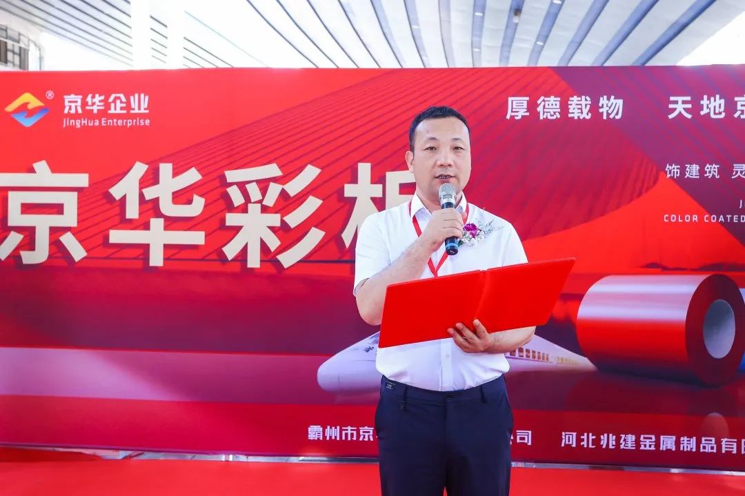 京華金屬制(zhì)品有(yǒu)限公司總經理(lǐ)陳鐵(tiě)柱、副總經理(lǐ)王飛、副總經理(lǐ)邢英壯、生(shēng)産副總王光增、彩闆銷售經理(lǐ)肖冰等主要領導以及華鐵(tiě)傳媒集團有(yǒu)限公司高(gāo)級副總裁程碩、特邀經銷商劉昊、郭澤溪、周世斌、梁馨予、齊振、周立揚、郭相、趙士宇等雙方領導、嘉賓共同出席。